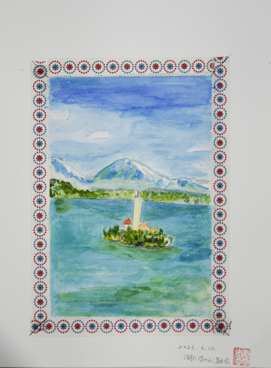 2023.06 「湖に浮かぶ教会」 水彩画